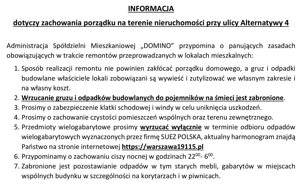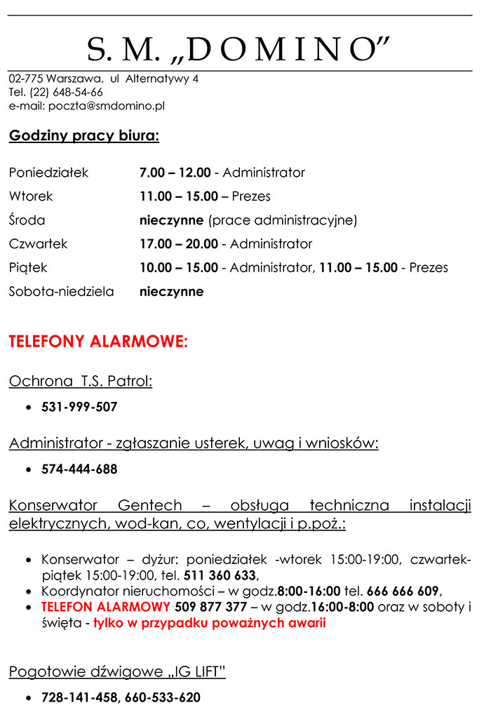 Spółdzielnia Miezkaniowa „DOMINO” zaprasza do udziału w konkursie ofert:
